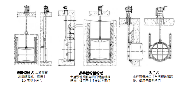 閘門上下框設有固定塊,可防止閘板在運輸吊裝等過程中滑出,安裝凝固后(使用前)應先卸掉上閘的固定塊和下框緊回螺栓,方可啟動。